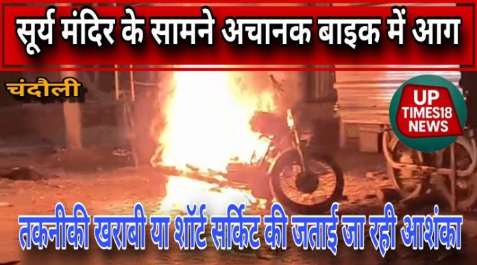 चंदौली : मुगलसराय कस्बे में उस समय अफरा-तफरी मच गई जब मानसरोवर तालाब के पास स्थित प्राचीन सूर्य मंदिर के सामने खड़ी एक बाइक अज्ञात कारणों से अचानक आग की लपटों में घिर गई। देखते ही देखते बाइक पूरी तरह जलकर खाक हो गई। घटना स्थल पर मौजूद लोग कुछ पल के लिए दहशत में आ गए और वहां भगदड़ जैसी स्थिति बन गई। वही घटना का वीडियो सोशल मीडिया पर वायरल हो गया।