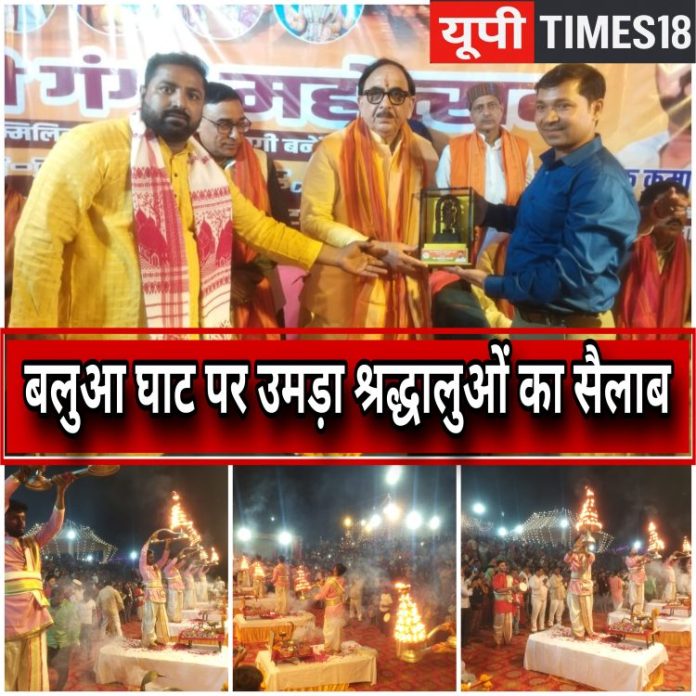 कार्यक्रम का शुभारंभ बतौर मुख्य अतिथि पूर्व केंद्रीय मंत्री (भारत सरकार) डॉ. महेंद्र नाथ पाण्डेय ने ब्राह्मणों द्वारा वैदिक मंत्रोच्चारण के बीच मां गंगा को दीपदान कर किया। इसके पूर्व घाट और बलुआ बाजार को आकर्षक रूप से दुल्हन की तरह सजाया गया था। घाट पर विशेष लाइटिंग और सजावट ऐसी कि देखने वाले देर तक निहारते रह गए। गंगा सेवा समिति के तत्वावधान में 21 हजार दीपों की लौ ने संपूर्ण वातावरण को पवित्र और दिव्य बना दिया।