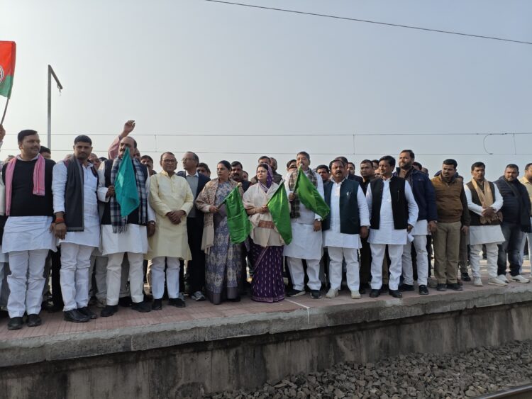 मझवार स्टेशन पर दून एक्सप्रेस के ठहराव का हुआ शुभारंभ, सांसदों ने हरी झंडी दिखाकर किया रवाना