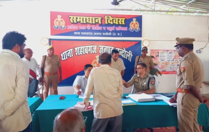 चंदौली : जिले के शहाबगंज थाना में शनिवार को जिलाधिकारी निखिल टी. फुंडे और पुलिस अधीक्षक आदित्य लांग्हे की अध्यक्षता में थाना समाधान दिवस का आयोजन किया गया. इस अवसर पर फरियादियों ने अपनी समस्याएं अधिकारियों के समक्ष रखी. जिसमें पुलिस और भूमि विवाद से जुड़े मामलों की सुनवाई हुई. इस दौरान राजस्व के 87 व पुलिस सम्बंधित 13 प्रार्थना पत्र प्राप्त हुए. वही प्राप्त प्रार्थना पत्रों के निस्तारण के लिए तत्काल संबंधित अधिकारी को निर्देश दिया गया.