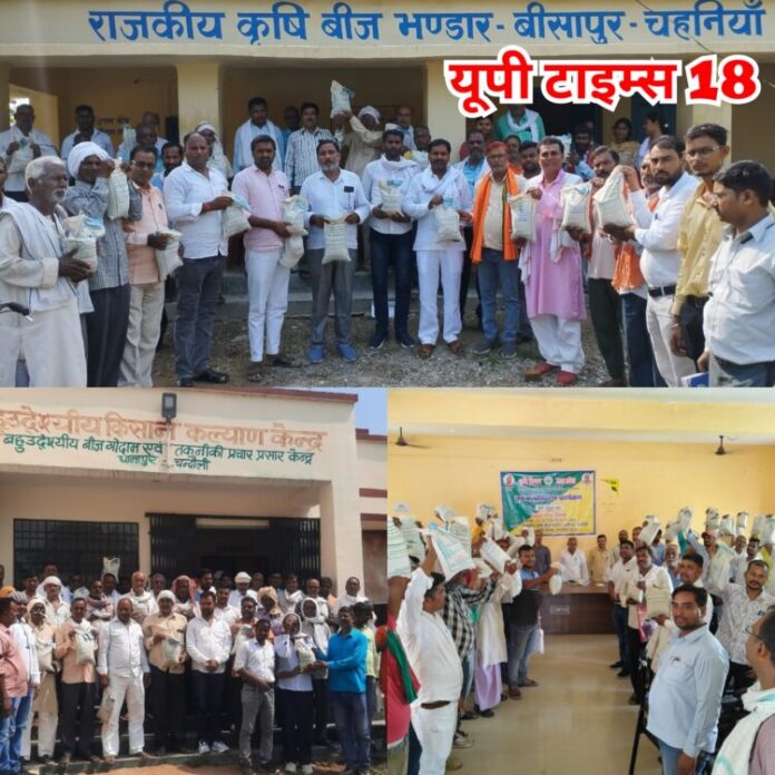 किसानों को निःशुल्क बाटी गई मिनी बीज किट, पीओएस मशीन पर अंगूठा लगाकर वितरण हुआ बीज