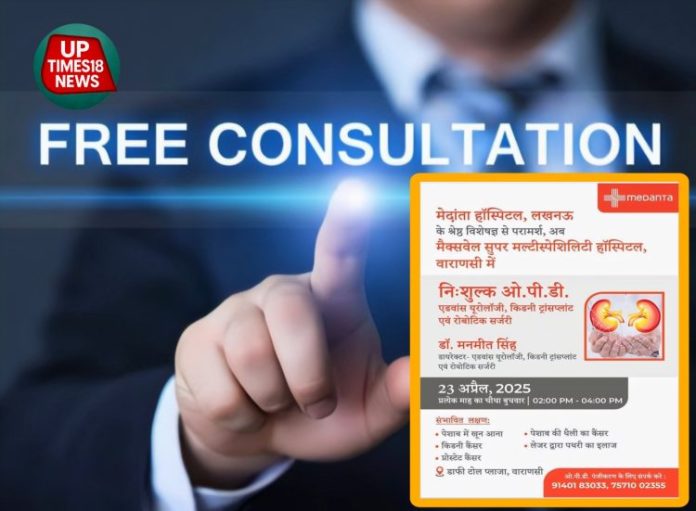 वाराणसी : स्वास्थ्य सेवा के क्षेत्र में एक अहम अवसर आज वाराणसी वासियों को मिलने जा रहा है। देश के प्रतिष्ठित मेदांता हॉस्पिटल के किडनी रोग विशेषज्ञ, डॉ. मनमीत सिंह, जो कि एडवांस यूरोलॉजी, किडनी ट्रांसप्लांट एवं रोबोटिक सर्जरी के डायरेक्टर हैं, आज मैक्सवेल सुपर मल्टी स्पेशलिटी हॉस्पिटल, वाराणसी में निशुल्क ओपीडी परामर्श देंगे।
