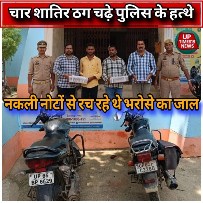 चंदौली में नकली नोट गिरोह का पर्दाफाश, असली नोट के बीच चूरन नोट रखकर करते थे ठगी, चार गिरफ्तार