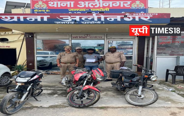 चंदौली : जनपद चंदौली की अलीनगर पुलिस ने एक बड़ी सफलता हासिल करते हुए 25 हज़ार रुपये के इनामी शातिर अपराधी को गिरफ्तार कर लिया। पुलिस ने उसके पास से अवैध असलहा व तीन चोरी की दोपहिया वाहन बरामद किए हैं। गिरफ्तार आरोपी का लंबा-चौड़ा आपराधिक इतिहास सामने आया है।
