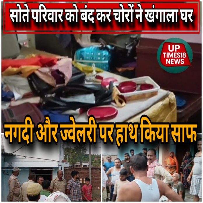 चंदौली : जनपद के सदर कोतवाली क्षेत्र अंतर्गत माधोपुर नरसिंहपुर गांव में बीती रात चोरों ने एक घर को अपना निशाना बनाते हुए बड़ी चोरी की वारदात को अंजाम दिया। चोरों ने न सिर्फ नकदी और कीमती जेवरात पर हाथ साफ किया, बल्कि घर में सो रहे परिजनों को बाहर से कमरे में बंद कर इत्मिनान से पूरा घर खंगाल डाला।