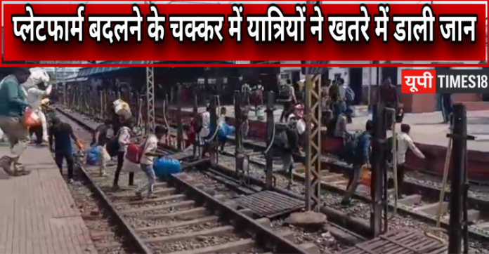 चंदौली : पंडित दीनदयाल उपाध्याय जंक्शन पर बुधवार की शाम स्टेशन प्रबंधन की लापरवाही का मामला सामने आया। ट्रेन के प्लेटफार्म परिवर्तन की सूचना समय से न मिलने के कारण यात्रियों में अफरा-तफरी मच गई। जिसका वीडियो सोशल मीडिया पर तेजी से वायरल हो रहा है। हालांकि यूपी टाइम्स18 वायरल वीडियो की पुष्टि नहीं करता है। बताया जा रहा है कि बड़ी संख्या में यात्री अपनी ट्रेन का इंतजार प्लेटफार्म संख्या दो पर कर रहे थे। इसी दौरान अचानक घोषणा हुई कि ट्रेन प्लेटफार्म संख्या तीन पर आएगी।