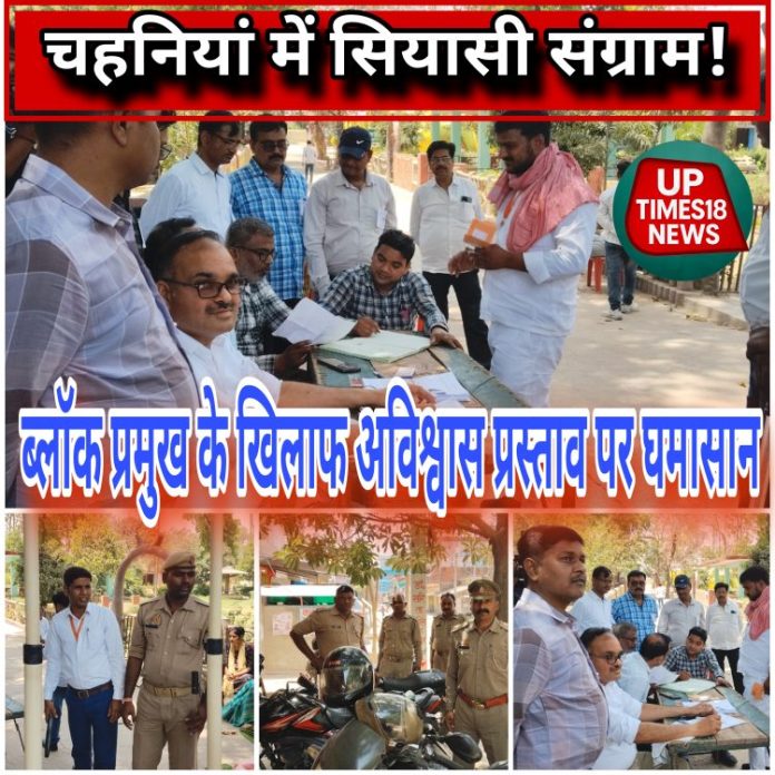चहनियां ब्लॉक प्रमुख के खिलाफ अविश्वास प्रस्ताव पर सियासी संग्राम, पुलिस बल की भारी तैनाती