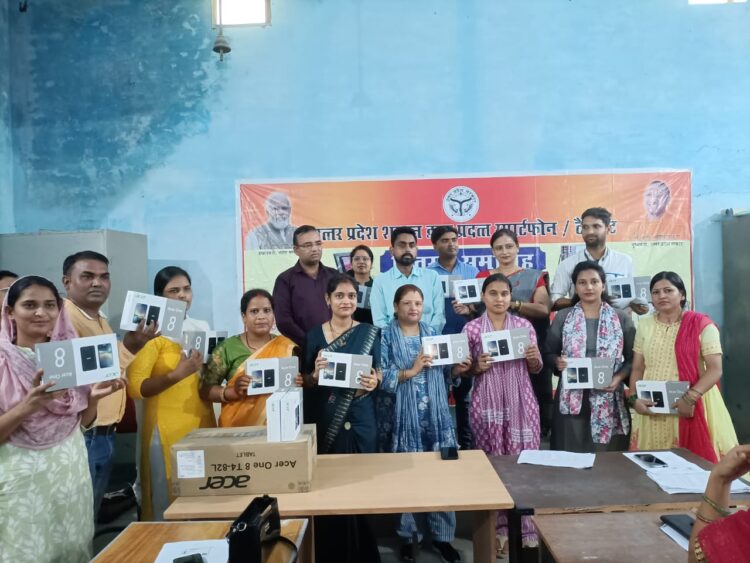 राजर्षि टण्डन के छात्र-छात्राओं को मिला टैबलेट, छात्रों के खिले चेहरे