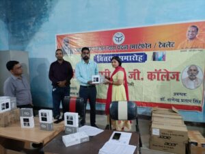 चंदौली : युवाओं के तकनीकी सशक्तिकरण के लिए प्रदेश सरकार द्वारा स्मार्ट फोन व टैबलेट वितरण किया जा रहा है. योजना के तहत शुक्रवार को उत्तर प्रदेश राजर्षि टंडन मुक्त विश्वविद्यालय के अध्ययन केंद्र मां खंडवारी देवी पी.जी. कालेज चहनियां में स्नातकोत्तर के छात्रों को टैबलेट का वितरण किया गया.
