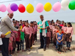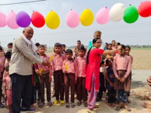 स्कूल के मुख्य द्वार को गुब्बारों से सजाया