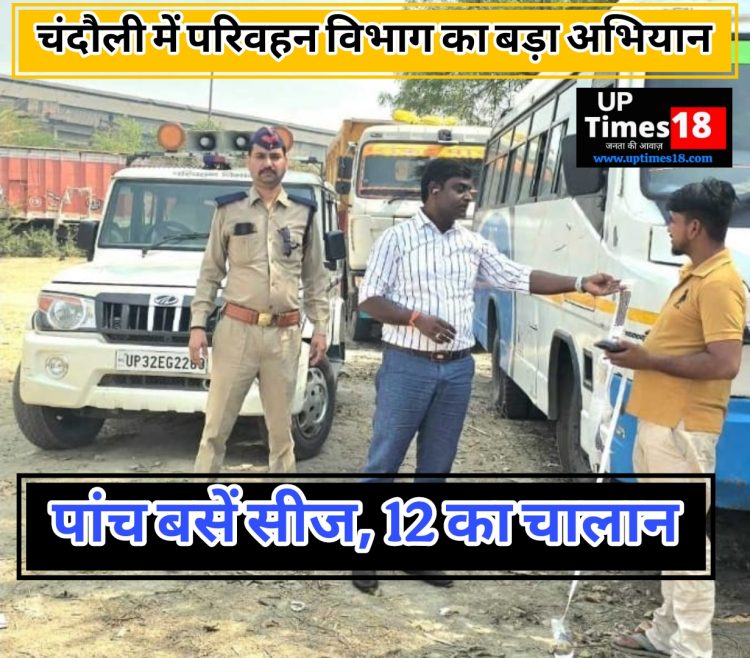 चंदौली में परिवहन विभाग का बड़ा अभियान, डग्गामार वाहनों पर कसा शिकंजा, पांच बसें सीज, 12 का चालान