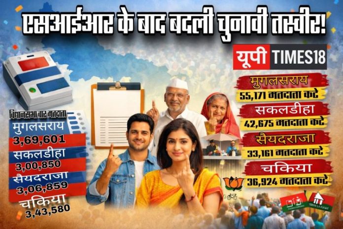 जिला निर्वाचन अधिकारी के अनुसार, सर्वाधिक नाम मुगलसराय विधानसभा में कटे हैं, जहां 55,171 मतदाता सूची से हटाए गए। वहीं सबसे कम सैयदराजा विधानसभा में 33,161 नाम विलोपित हुए। अन्य विधानसभाओं में सकलडीहा में 42,675 और चकिया में 36,924 मतदाताओं के नाम सूची से हटाए गए।